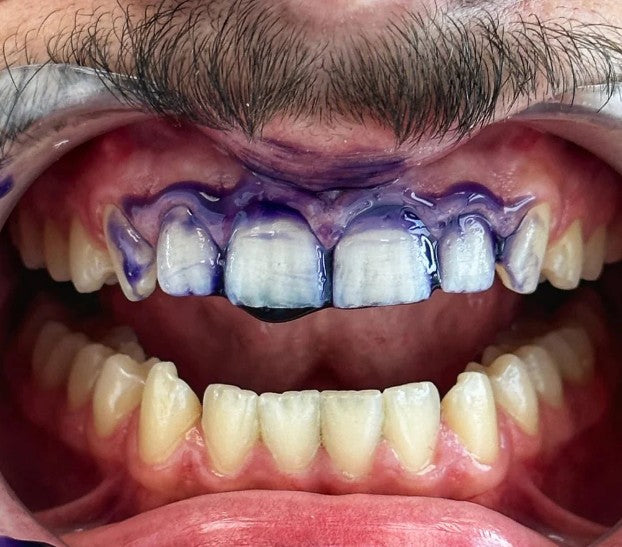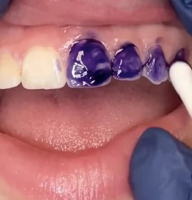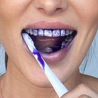 - Applique 2 pressions de dentifrice correcteur V34 sur une brosse à dents souple.