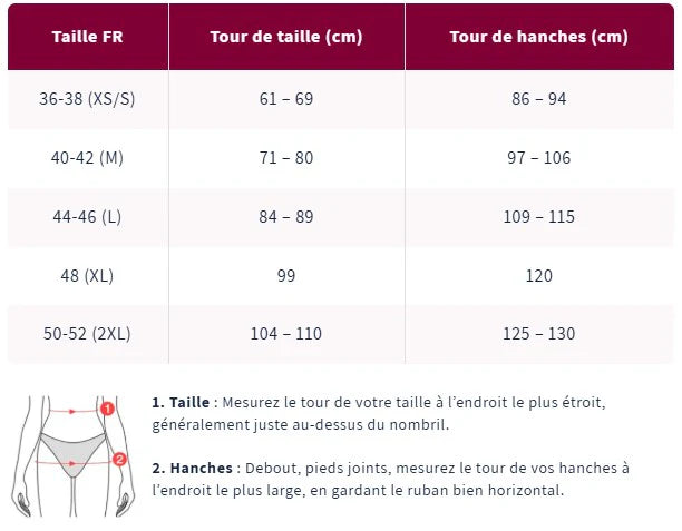 Son tissu gainant exerce une légère compression qui affine visiblement la taille et lisse la peau, réduisant l’aspect peau d’orange.
