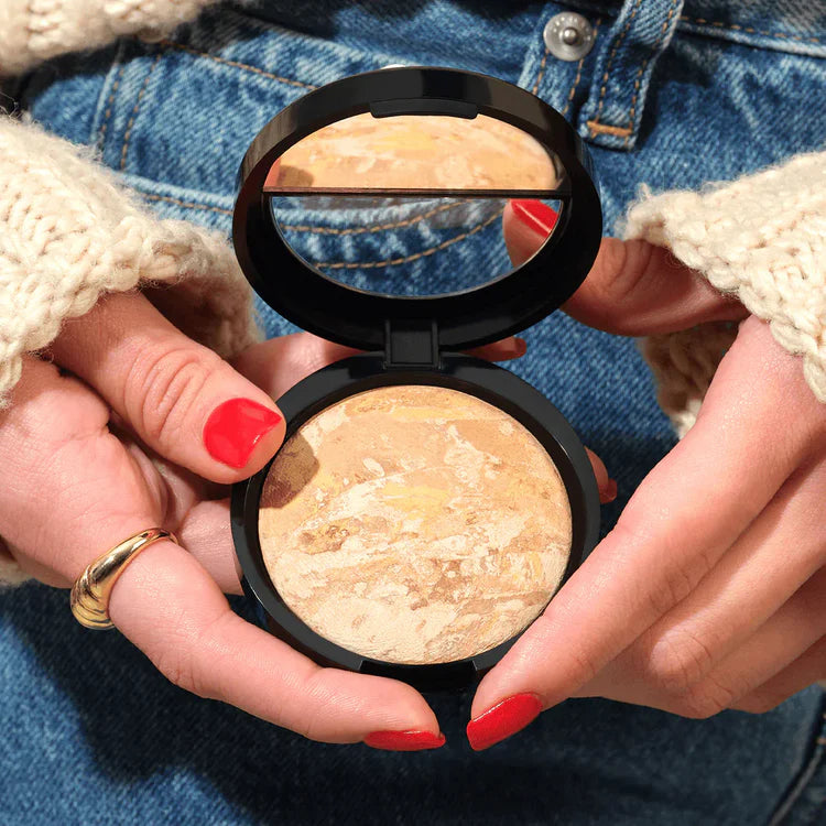 Utilisez un pinceau plus dense et pressez délicatement la poudre sur la peau, sans étirer le pinceau. Cette technique permet une meilleure adhérence et un rendu plus velouté, idéal pour camoufler rides, ridules et imperfections.